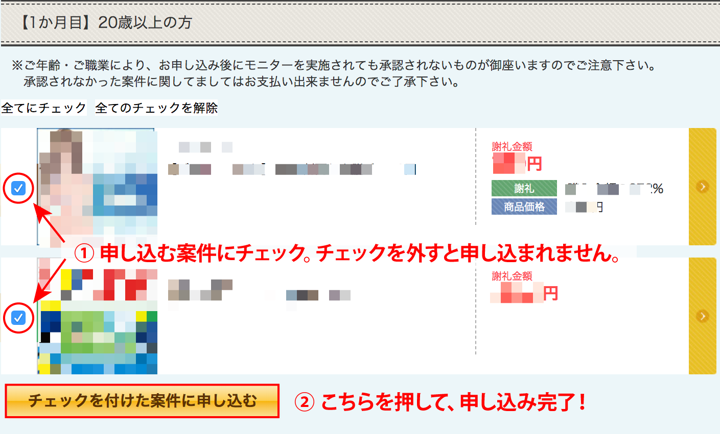 (3)「選択した案件をまとめて申し込む」を押すと、まとめて申し込むページへ移り、一気に予約まで手続きをすることができます。